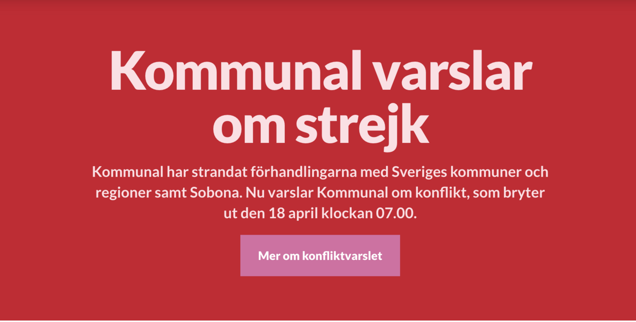 Kommunal upplever att de inte kommer framåt i sina förhandlingar med Sveriges kommuner och regioner och Sobona. Därför har kommunal varslat om stridsåtgärderna strejk och blockad. Här kan du läsa mer av kommunals information. Här finns även information om vilka arbetsplatser som berörs.