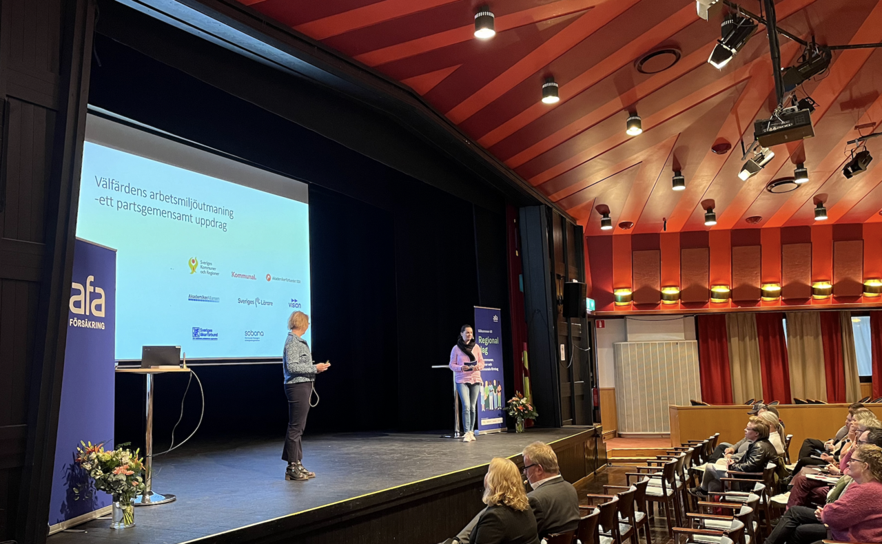 Vi behöver bli mer delaktiga för att påverka vår arbetsmiljö. AFA Försäkring, som ägs av oss fackförbund tillsammans med arbetsgivarna, arrangerar regionala träffar för dialog om arbetsmiljöfrågor. På AFAs regionala dag i Mora pratade Akademikerförbundet SSR:s ombudsman Maja Todorovic och Christin Granberg från SKR om varför både fack och arbetsgivare centralt tror på att samvekan kan ge både bättre arbetsmiljö och gynna verksamheterna våra medlemmar/medarbetare finns i.