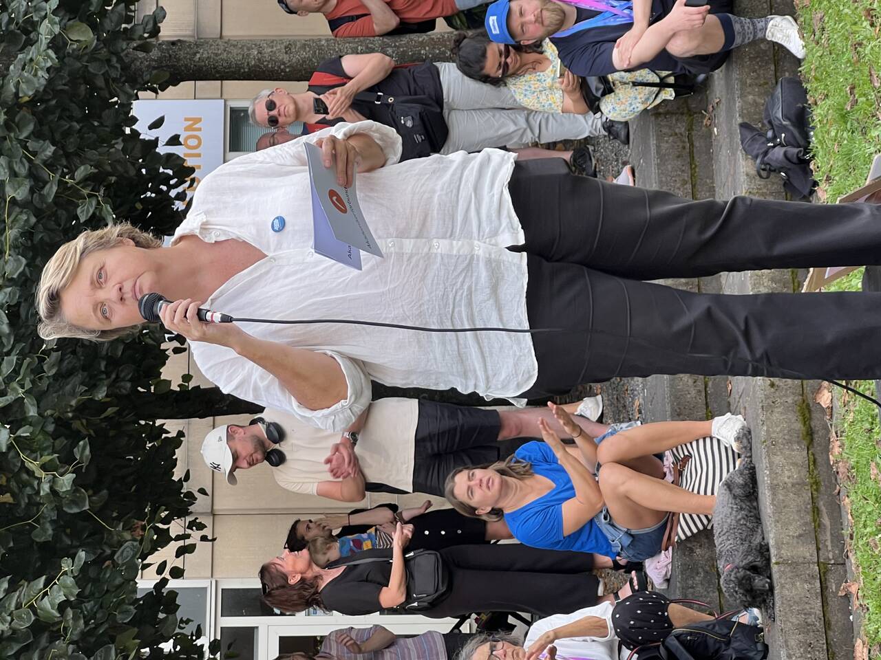 Vi är här från Akademikerförbundet SSR, för att vi är arga! Så inledde vår samhällspolitiska chef Ursula Berge sitt tal på dagens manifestation mot att införa en angiverilag.